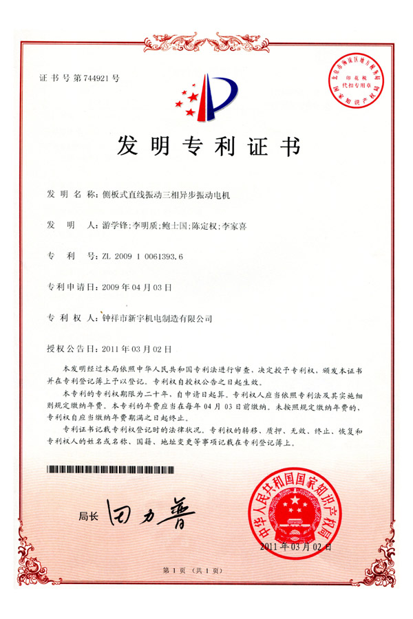 鐘祥新宇機(jī)電制造股份有限公司前身是鐘祥電機(jī)廠,1968年籌建工廠,原機(jī)電部確認(rèn)為定點(diǎn)生產(chǎn)中小型電機(jī)的專(zhuān)業(yè)廠家。主要生產(chǎn)各類(lèi)振動(dòng)電機(jī)、振動(dòng)機(jī)械、輸送機(jī)械。是中國(guó)電器工業(yè)協(xié)會(huì)中小型電機(jī)分會(huì)理事單位、中國(guó)重型機(jī)械工業(yè)協(xié)會(huì)洗選設(shè)備專(zhuān)業(yè)委員會(huì)理事單位,是中國(guó)大型的振動(dòng)電機(jī)生產(chǎn)廠家。銷(xiāo)售經(jīng)理寇紅波,熱線:13797914837。
