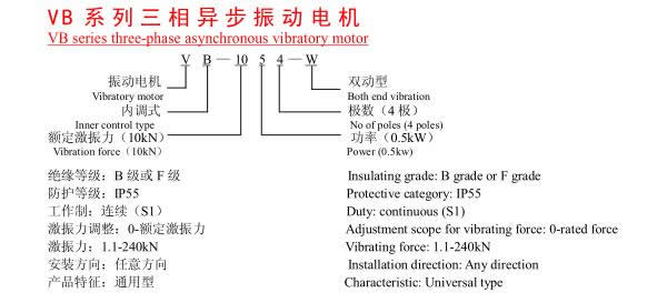 VB系列振動電機,功率0.12~25KW,2、4、6、8極,激振力為2.5~300KN,共計56個規(guī)格。